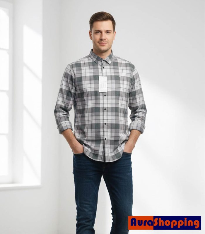 Black / Charcoal Grey Abstract Ikat Print Casual Shirt